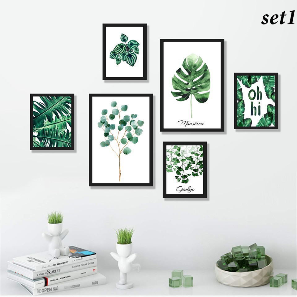 Combo 6 tranh treo tường lá cây nhiệt đới trang trí tặng kèm đinh 3 chân