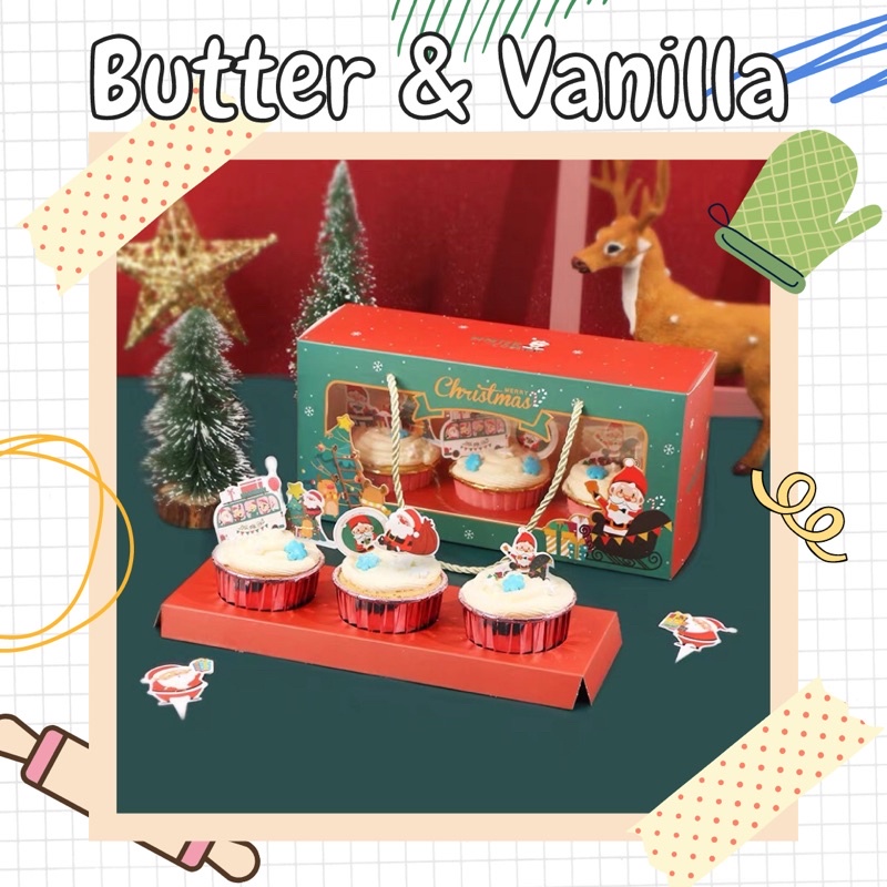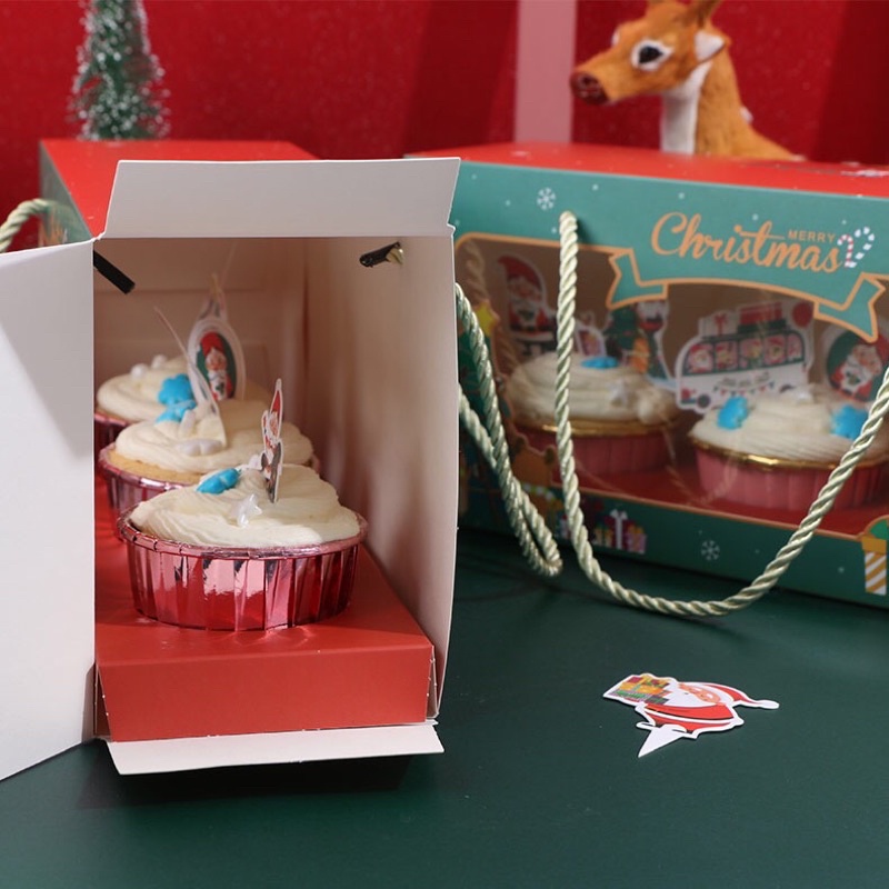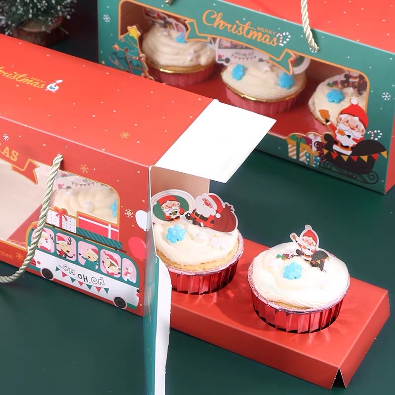 Hộp Đựng Cupcake Giáng Sinh Set 3 Cup - Kèm Cup free ship