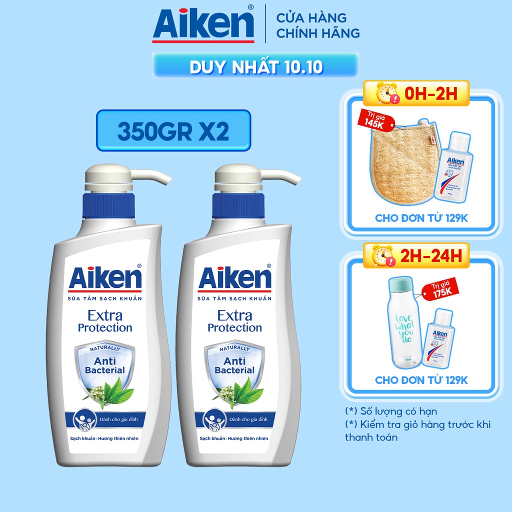 [Mã FMCGMALL giảm 8% đơn từ 250K] Aiken Combo 2 Sữa tắm Sạch khuẩn Chiết Xuất Trà Xanh Thiên Nhiên 350g/chai free ship